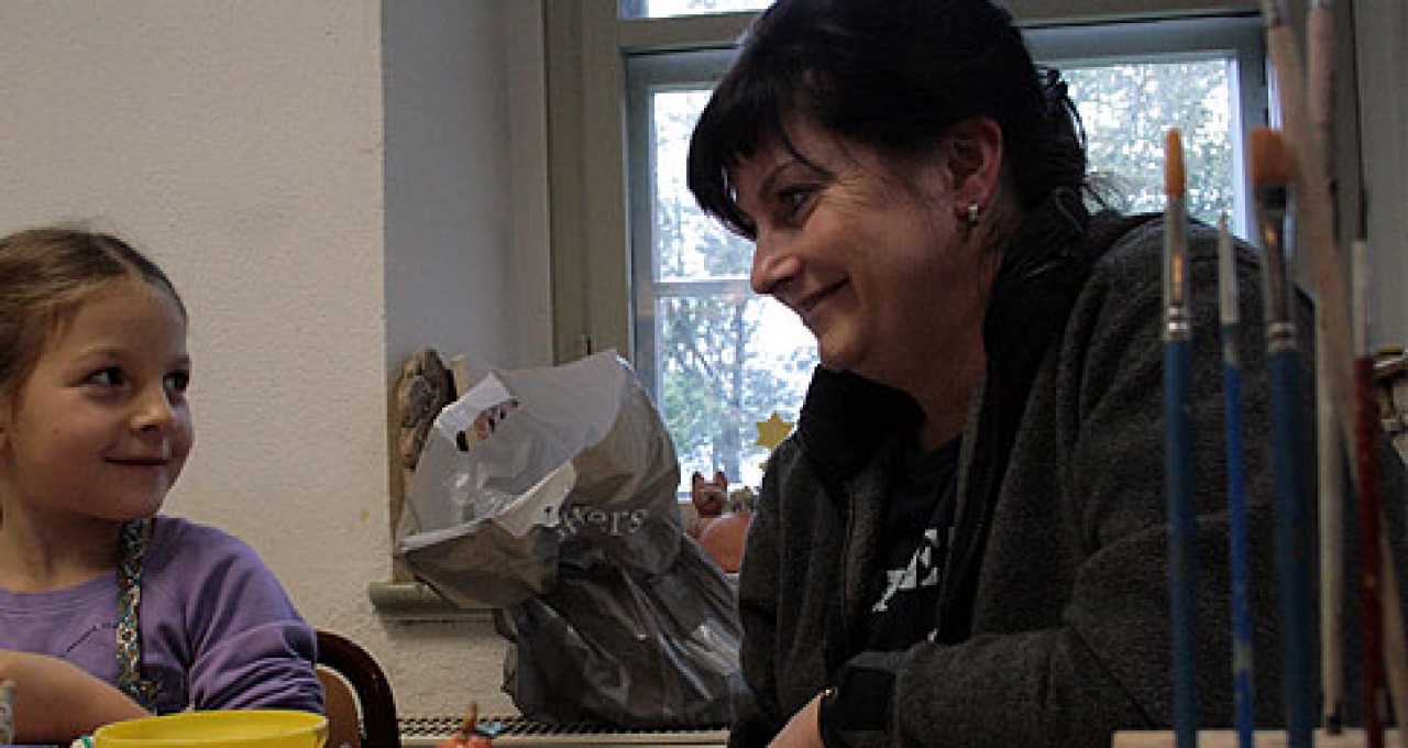 Die Schauwerbegestalterin hat ebenfalls durch ihre Tätigkeit in der Volkskunstschule die Keramik für sich entdeckt. Ihre Erfahrungen aus unzähligen Projekten nutzt sie nun in ihren Kursen. Hier bietet sie Kindern und Erwachsenen ihre Unterstützung bei eigenen Vorhaben. Der Kontakt zu den Menschen ist ihr wichtig. In ihren Kursen sind daher nicht nur die Ergebnisse von Bedeutung, sondern genauso das gemeinsame Tun.