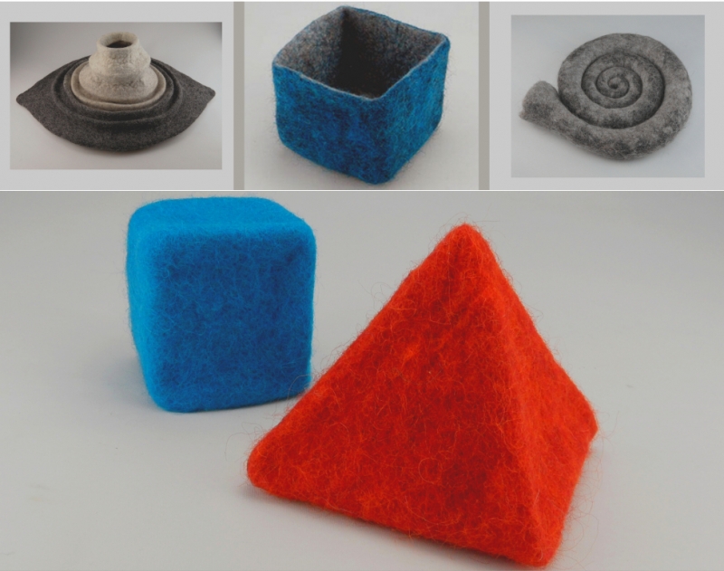 Im Kurs lernen die Teilnehmer das Filzen von Flächen und Hohlformen kennen und wie eine mehrlagige Schablone entwickelt wird.