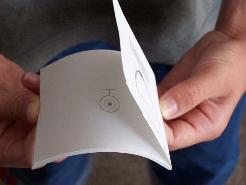 Überlegt euch ein kleines Motiv und zeichnet es versetzt auf viele Blätter. Wenn ihr die Blätter ganz schnell abblättert sieht es aus, als würde sich euer Motiv bewegen.
